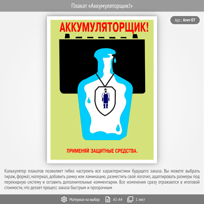 Плакат «Аккумуляторщик!» (Агит-07, 1 лист) в Черкесске купить