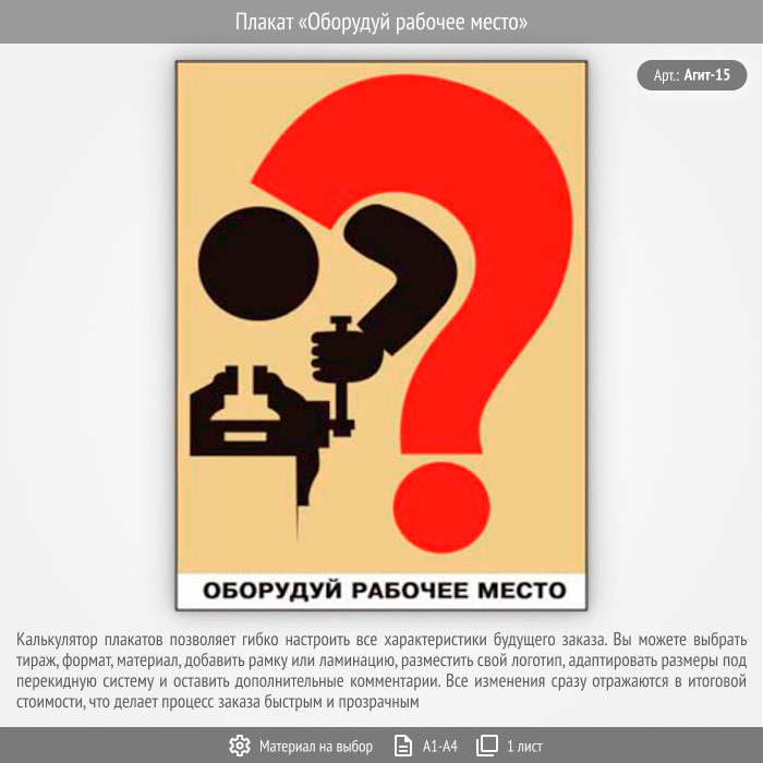 Плакат «Оборудуй рабочее место» (Агит-15, 1 лист) в Черкесске купить