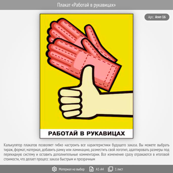 Плакат «Работай в рукавицах» (Агит-16, 1 лист) в Черкесске купить