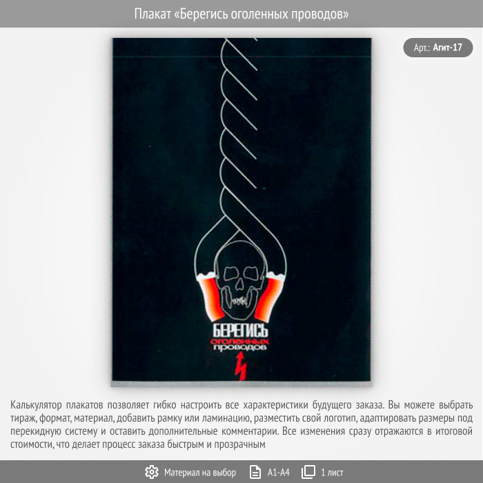 Плакат «Берегись оголенных проводов» (Агит-17, 1 лист) в Черкесске купить
