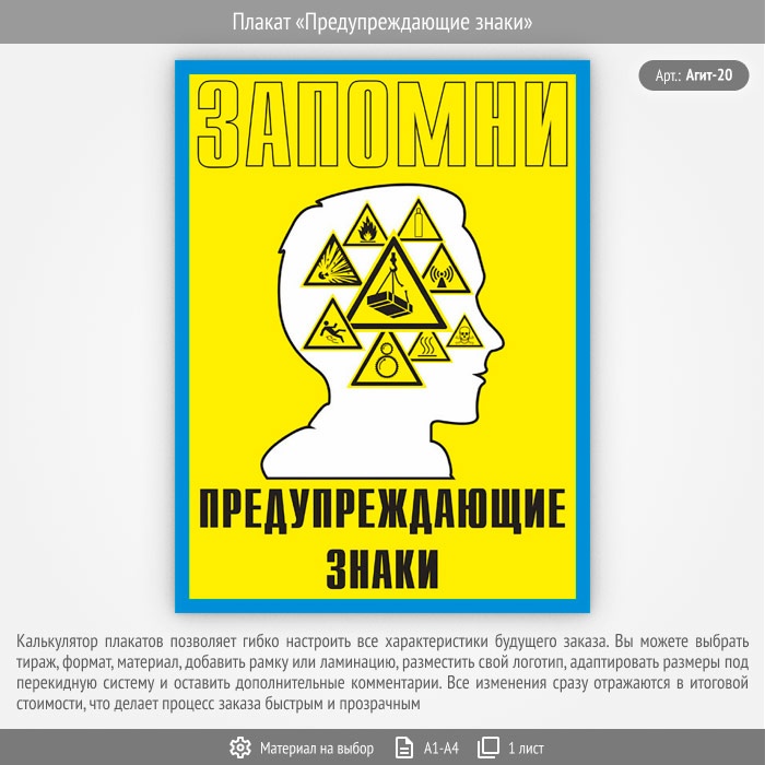 Плакат «Предупреждающие знаки» (Агит-20, 1 лист) в Черкесске купить