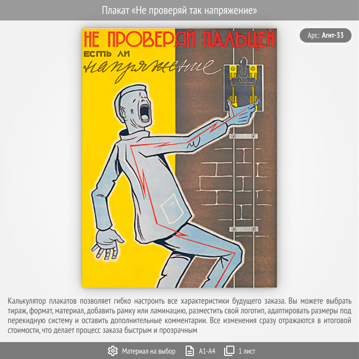 Плакат «Не проверяй так напряжение» (Агит-33, 1 лист) в Черкесске купить