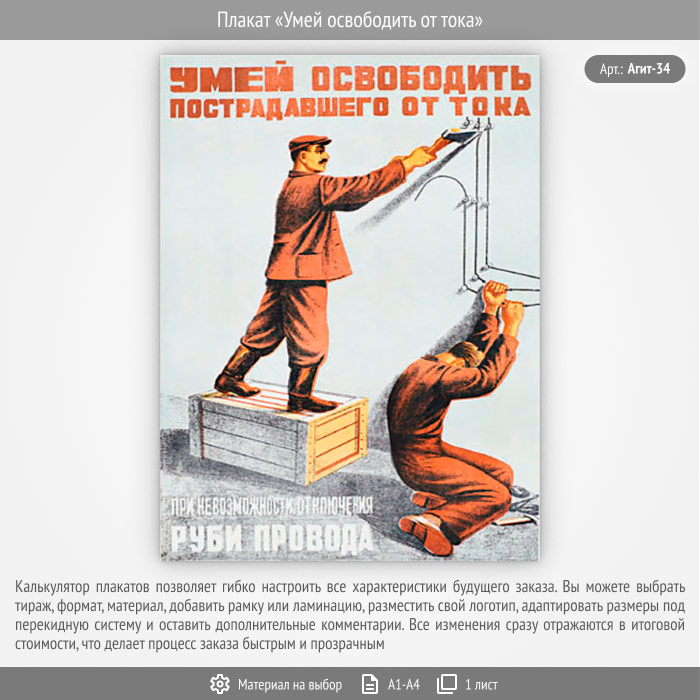 Плакат «Умей освободить от тока» (Агит-34, 1 лист) в Черкесске купить