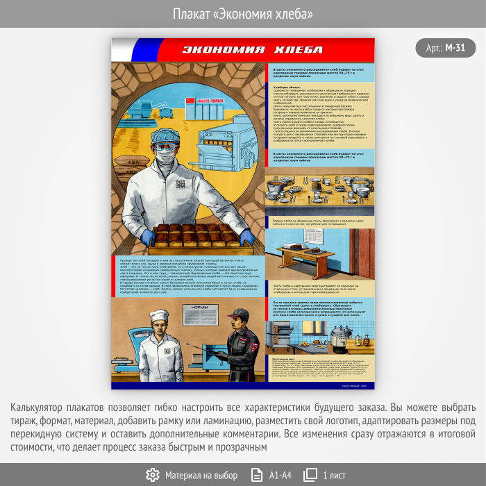 Плакат «Экономия хлеба» (М-31, 1 лист) в Черкесске купить