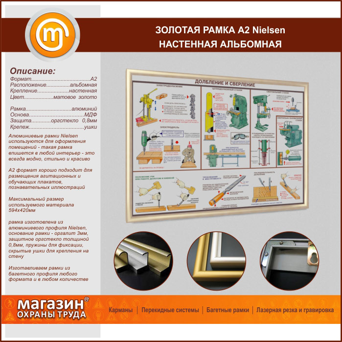 Багетная настенная рамка «Nielsen» А2 формата, альбомная, матовое золото в Черкесске купить