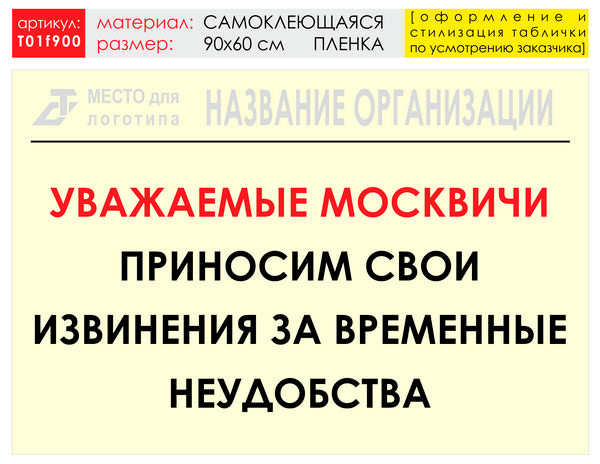 Баннер «Извинения», T01 (самоклеящаяся плёнка, 90х60 см) в Черкесске купить