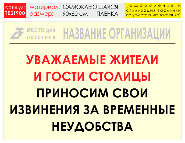 Баннер «Извинения», T02 (самоклеящаяся плёнка, 90х60 см) в Черкесске купить