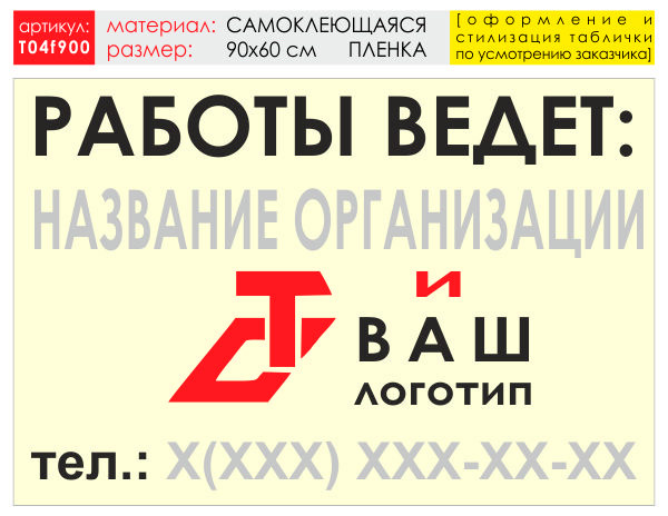 Баннер «Работы ведет», T04 (самоклеящаяся плёнка, 90х60 см) в Черкесске купить