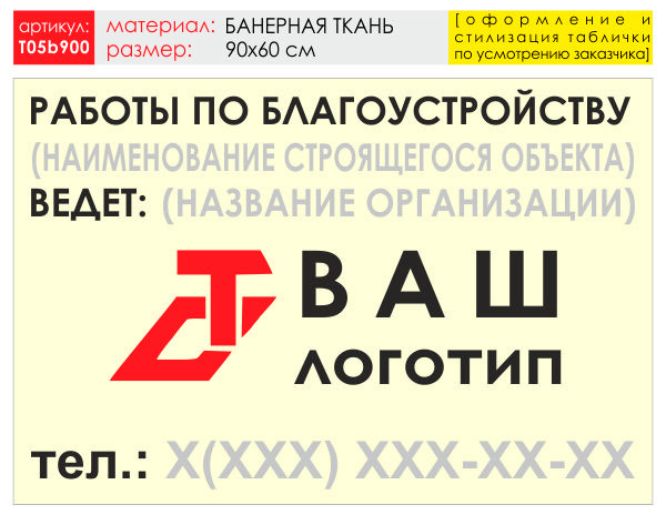 Баннер «Работы по благоустройству», T05 (баннерная ткань, 90х60 см) в Черкесске купить