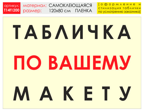 Баннер «Табличка по Вашему макету», T14 (самоклеящаяся плёнка, 120х90 см) в Черкесске купить