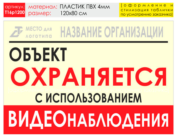 Баннер «Объект охраняется», T16 (пластик 4 мм, 120х90 см) в Черкесске купить