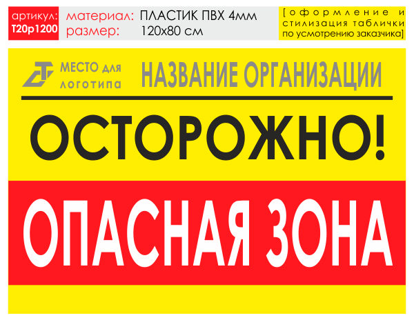 Баннер «Опасная зона», T20 (пластик 4 мм, 120х90 см) в Черкесске купить