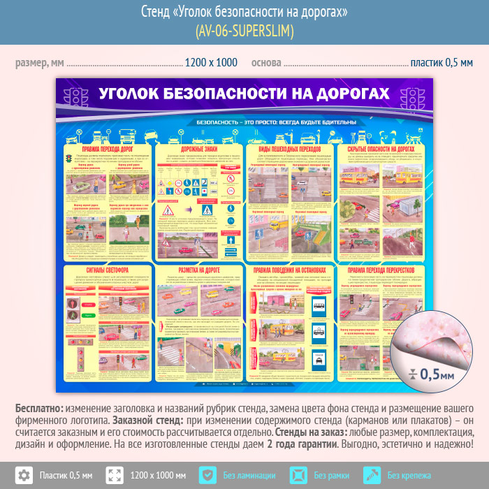 Стенд «Уголок безопасности на дорогах» (AV-06-SUPERSLIM) в Черкесске купить