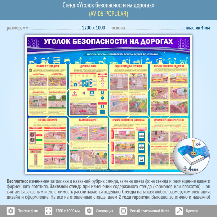Стенд «Уголок безопасности на дорогах» (AV-06-POPULAR) в Черкесске купить