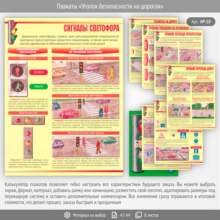 Плакаты «Уголок безопасности на дорогах» (АР-10, 8 листов) в Черкесске купить