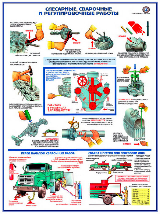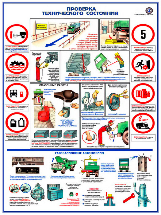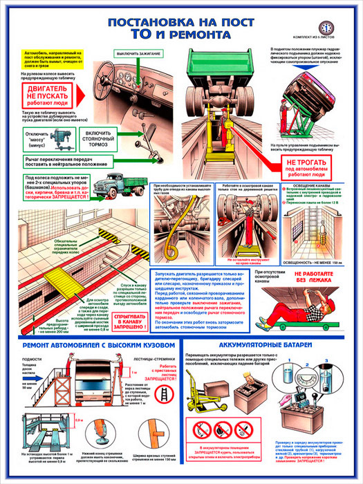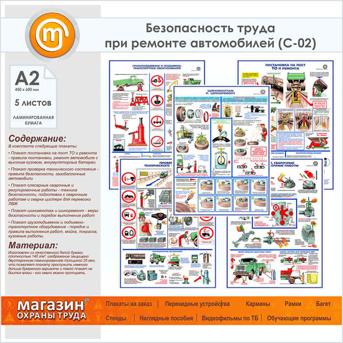 Плакат «Техника безопасности при ремонте автомобилей» (С-02, ламинированная бумага, А2, 5 листов) в Черкесске купить