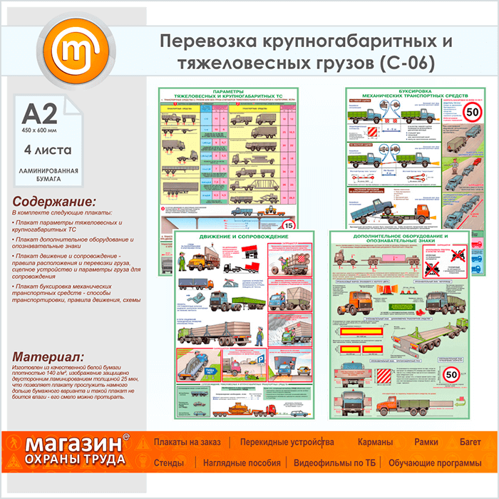 Плакаты «Перевозка крупногабаритных и тяжеловесных грузов» (С-06, ламинированная бумага, А2, 4 листа) в Черкесске купить