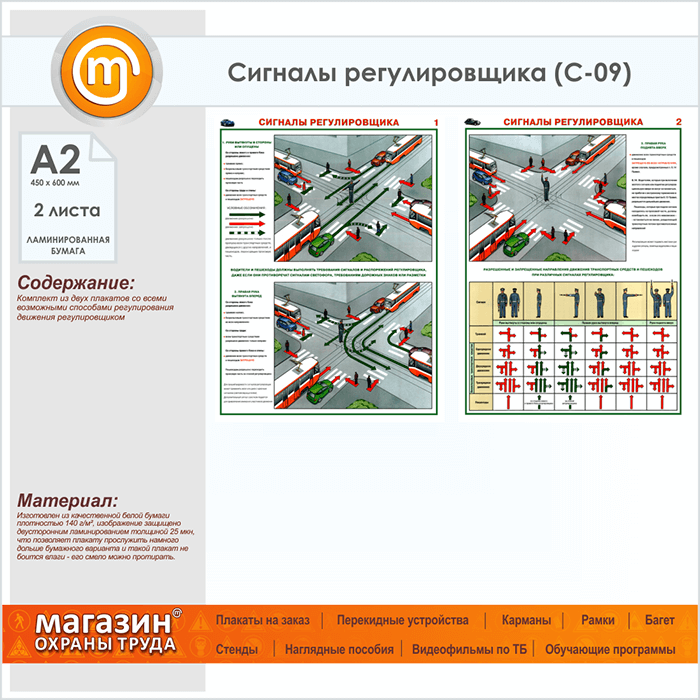 Плакаты «Сигналы регулировщика» (С-09, ламинированная бумага, А2, 2 листа) в Черкесске купить