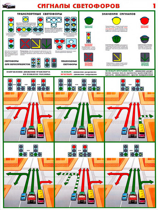 Плакаты «Сигналы светофоров» (С-10, ламинированная бумага, А2, 2 листа) в Черкесске купить