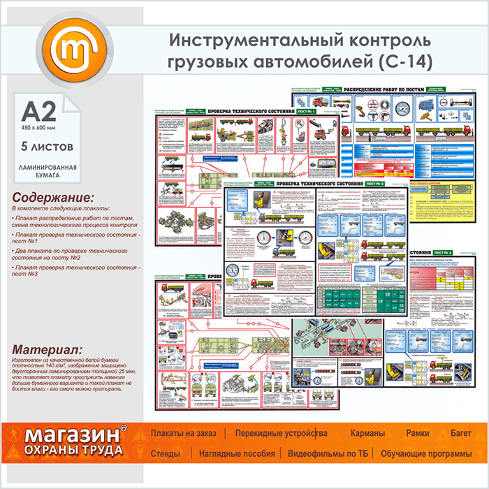 Плакаты «Инструментальный контроль грузовых автомобилей» (С-14, ламинированная бумага, А2, 5 листов) в Черкесске купить