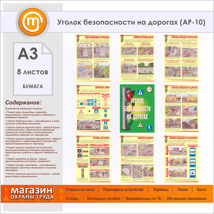 Плакаты «Уголок безопасности на дорогах» (АР-10, бумага, А3, 8 листов) в Черкесске купить