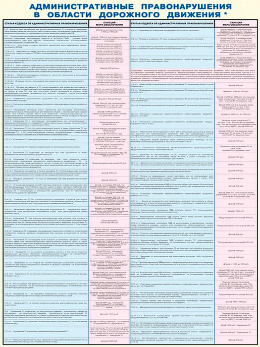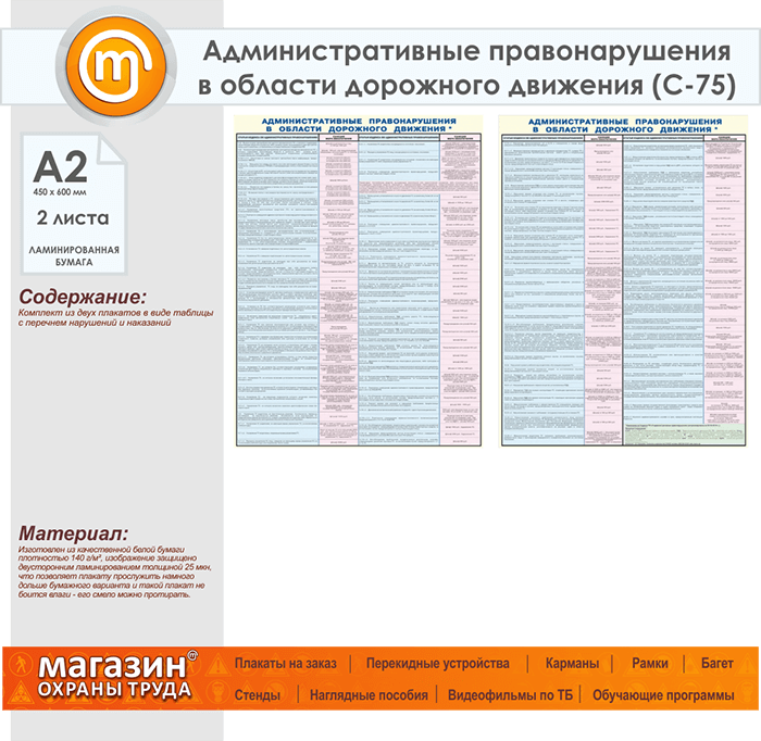 Плакаты «Административные правонарушения в области дорожного движения» (С-75, ламинированная бумага, А2, 2 листа) в Черкесске купить