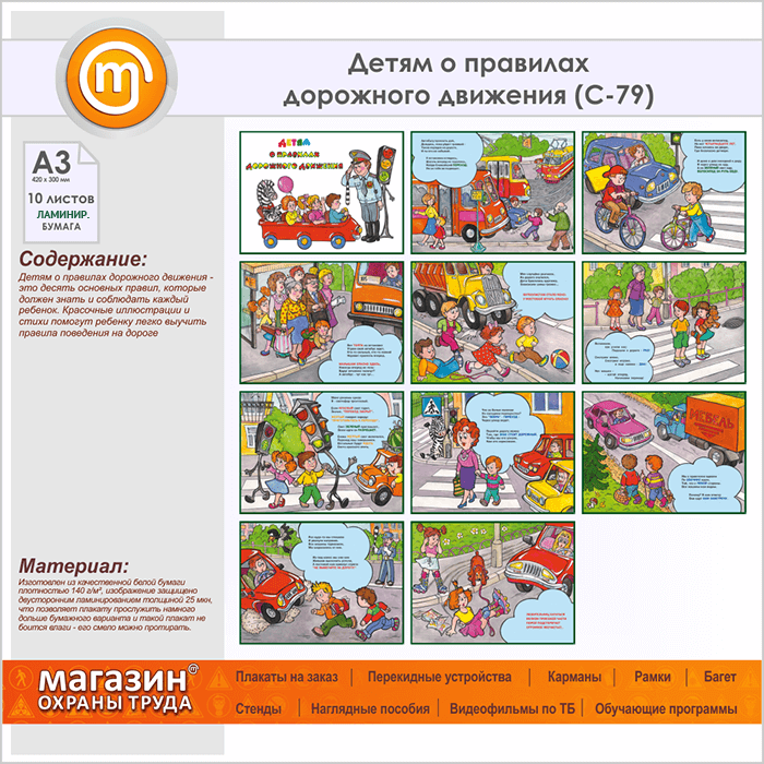 Плакаты «Детям о правилах дорожного движения» (С-79, ламинированная бумага, А3, 10 листов) в Черкесске купить