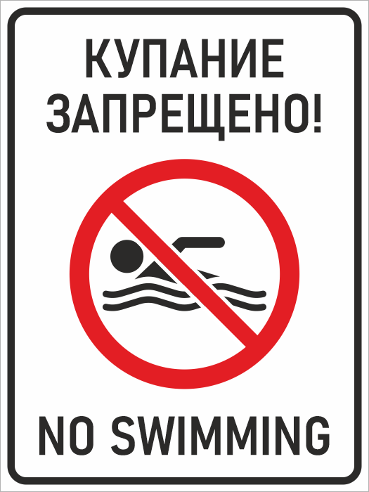Знак «Купание запрещено! / No swimming», БВ-13 (пластик 4 мм, 300х400 мм) в Черкесске купить