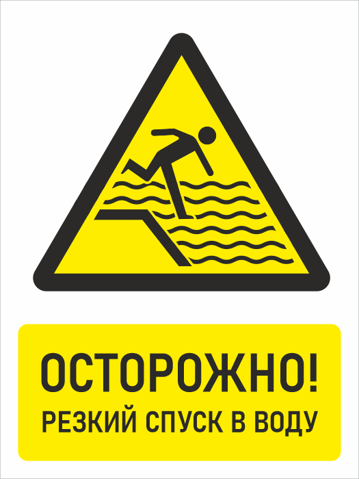 Знак «Осторожно! Резкий спуск в воду», БВ-32 (пластик 4 мм, 300х400 мм) в Черкесске купить