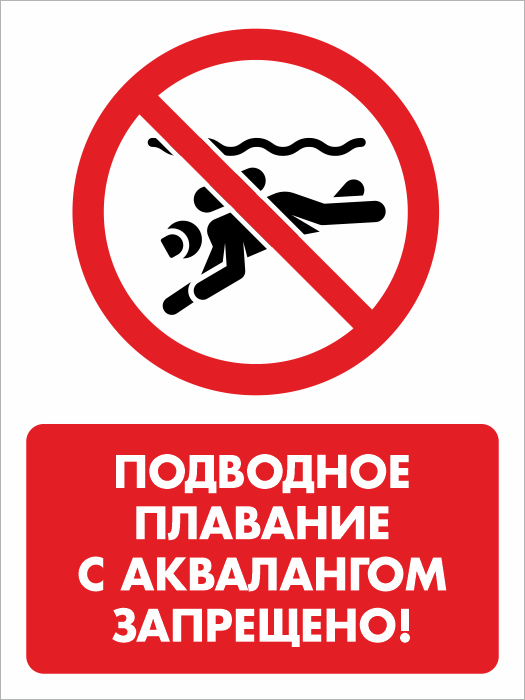 Знак «Подводное плавание с аквалангом запрещено!», БВ-38 (пластик 4 мм, 300х400 мм) в Черкесске купить
