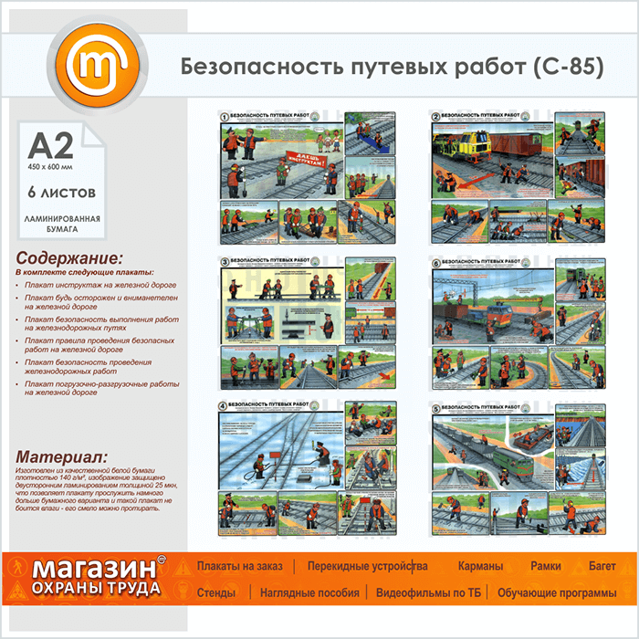 Плакаты «Безопасность путевых работ» (С-85, ламинированная бумага, А2, 6 листов) в Черкесске купить