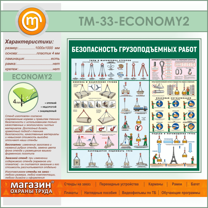 Стенд «Безопасность грузоподъемных работ» (TM-33-ECONOMY2) в Черкесске купить