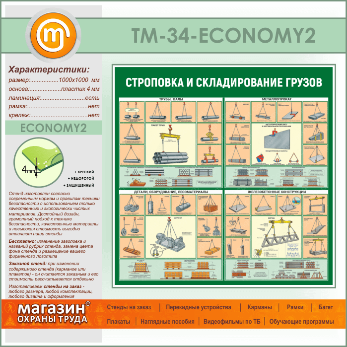 Стенд «Строповка и складирование грузов» (TM-34-ECONOMY2) в Черкесске купить