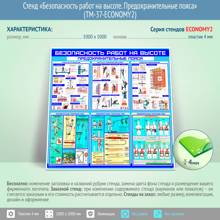 Стенд «Безопасность работ на высоте. Предохранительные пояса» (TM-37-ECONOMY2) в Черкесске купить