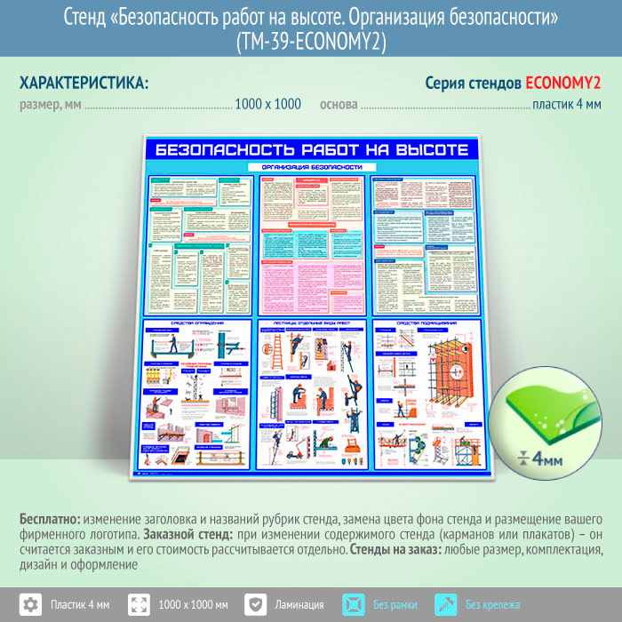 Стенд «Безопасность работ на высоте. Организация безопасности» (TM-39-ECONOMY2) в Черкесске купить