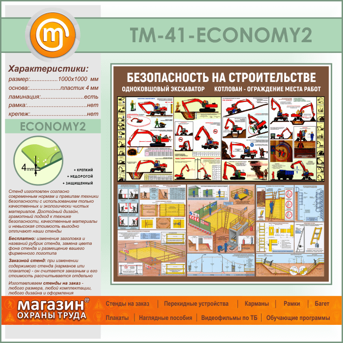 Стенд «Безопасность земляных работ. Экскаватор, котлован» (TM-41-ECONOMY2) в Черкесске купить