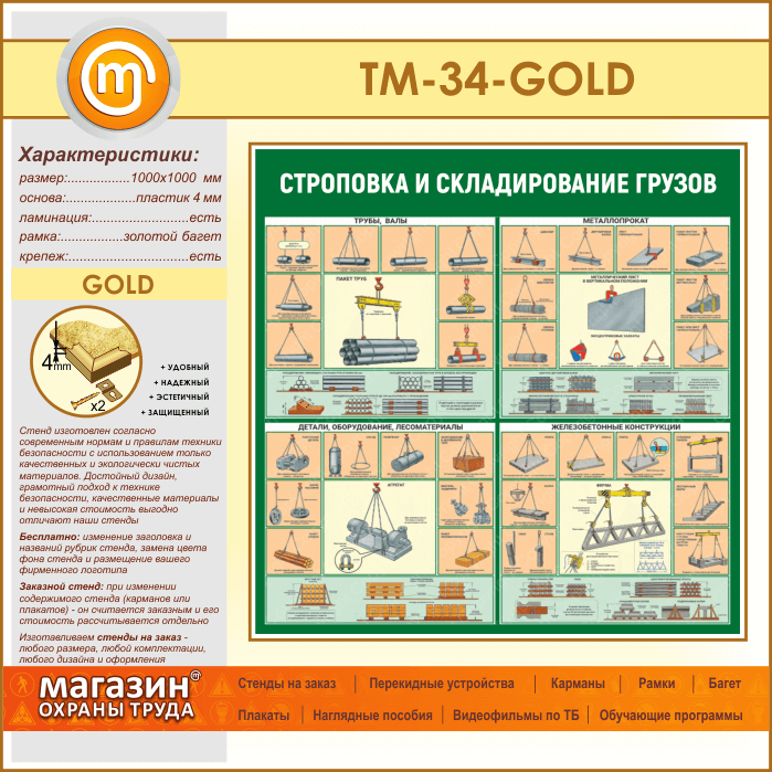 Стенд «Строповка и складирование грузов» (TM-34-GOLD) в Черкесске купить