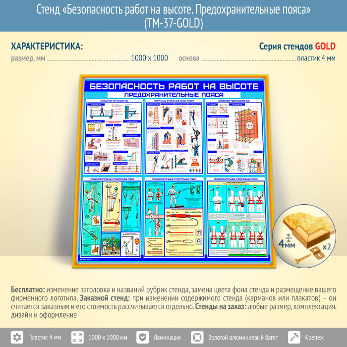 Стенд «Безопасность работ на высоте. Предохранительные пояса» (TM-37-GOLD) в Черкесске купить