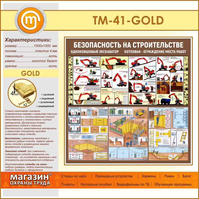 Стенд «Безопасность земляных работ. Экскаватор, котлован» (TM-41-GOLD) в Черкесске купить