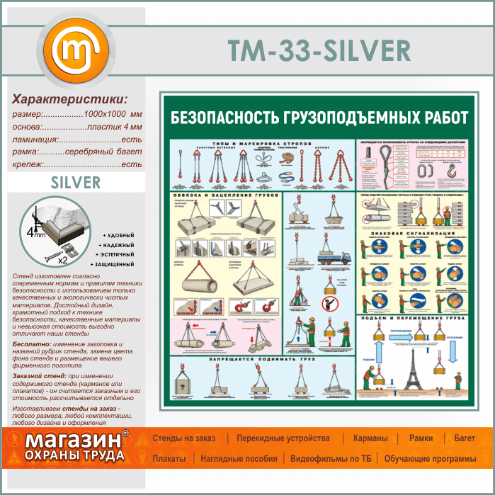 Стенд «Безопасность грузоподъемных работ» (TM-33-SILVER) в Черкесске купить