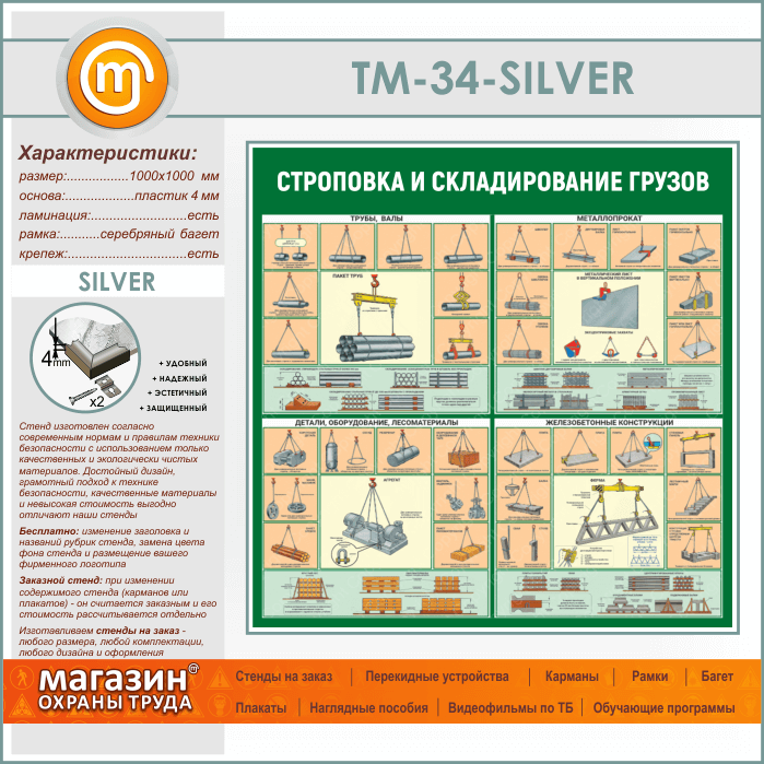 Стенд «Строповка и складирование грузов» (TM-34-SILVER) в Черкесске купить