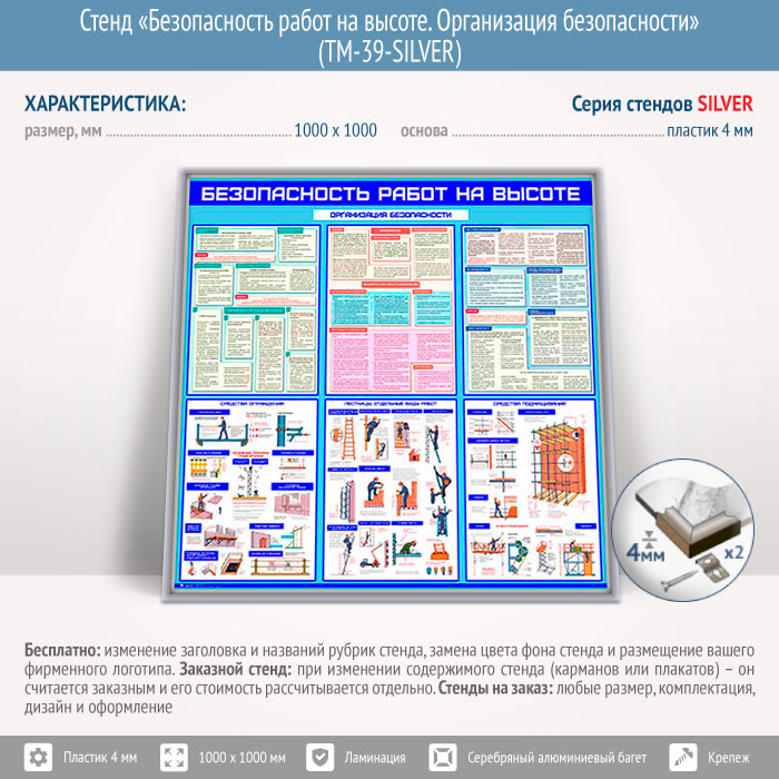 Стенд «Безопасность работ на высоте. Организация безопасности» (TM-39-SILVER) в Черкесске купить