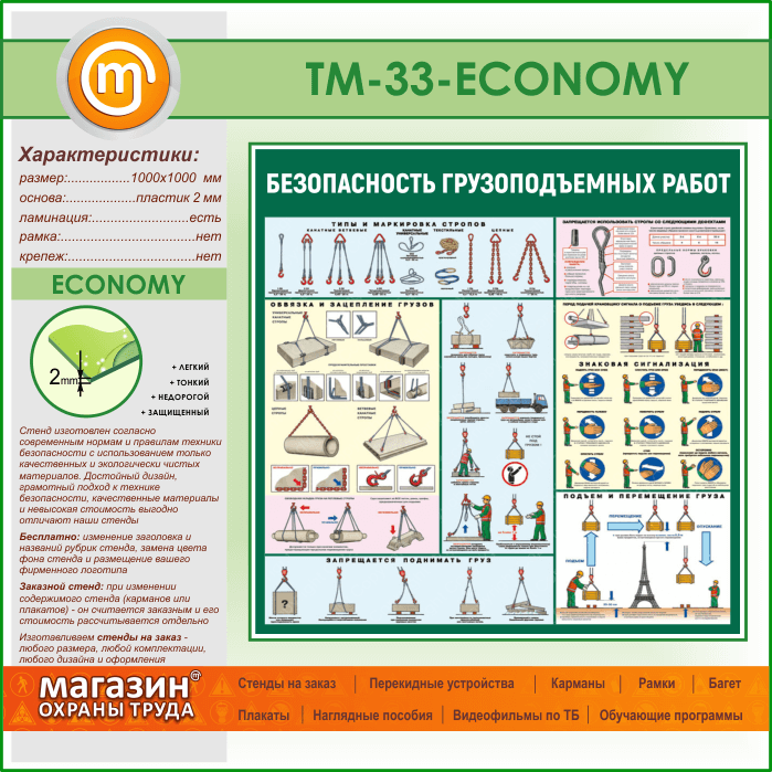 Стенд «Безопасность грузоподъемных работ» (TM-33-ECONOMY) в Черкесске купить