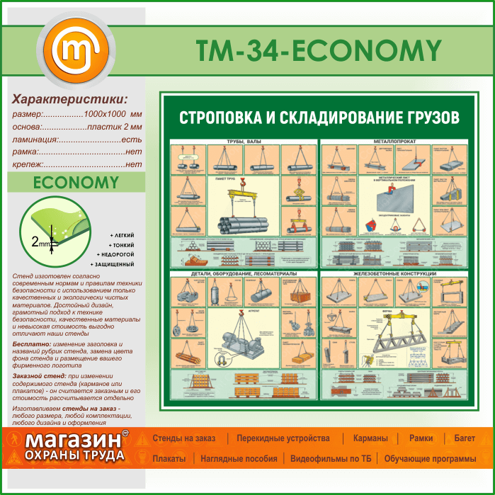 Стенд «Строповка и складирование грузов» (TM-34-ECONOMY) в Черкесске купить