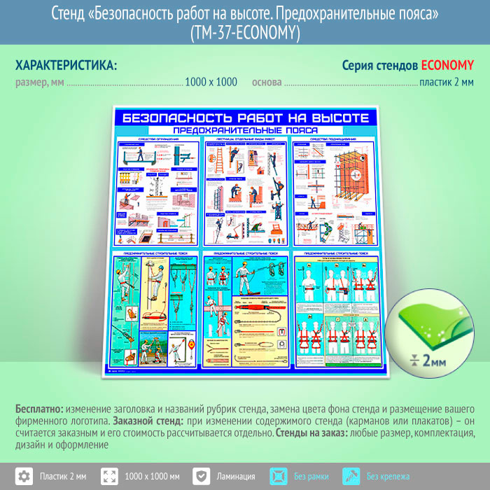 Стенд «Безопасность работ на высоте. Предохранительные пояса» (TM-37-ECONOMY) в Черкесске купить
