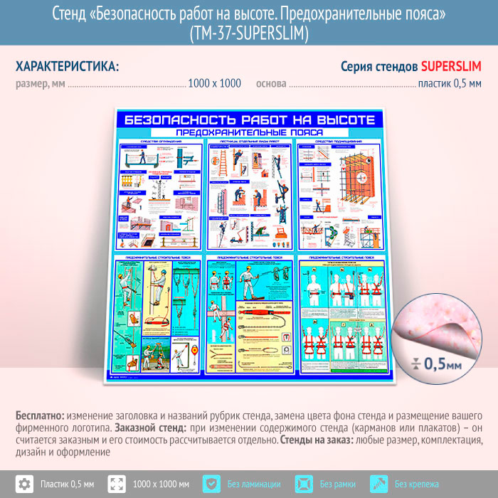 Стенд «Безопасность работ на высоте. Предохранительные пояса» (TM-37-SUPERSLIM) в Черкесске купить