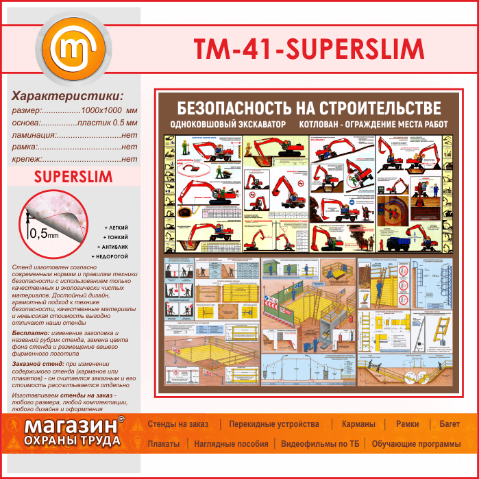 Стенд «Безопасность земляных работ. Экскаватор, котлован» (TM-41-SUPERSLIM) в Черкесске купить