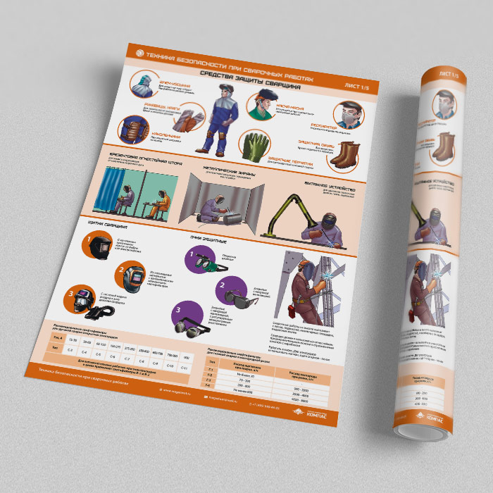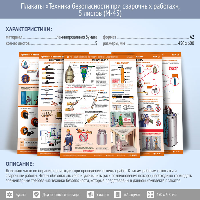 Плакаты «Техника безопасности при сварочных работах» (М-43, ламинированная бумага, А2, 5 листов) в Черкесске купить