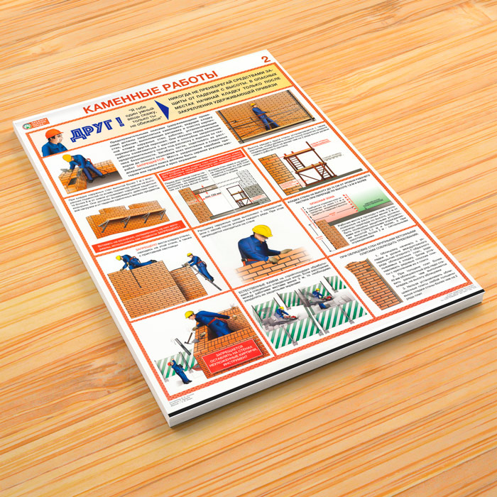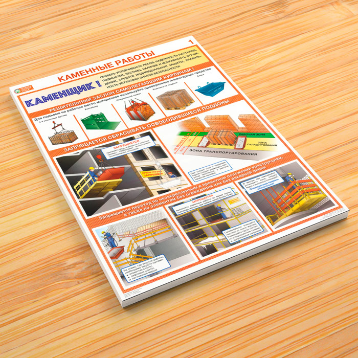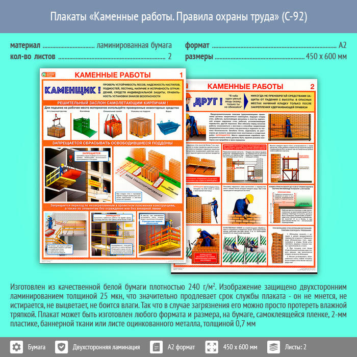 Плакаты «Каменные работы. Правила охраны труда» (С-92, ламинированная бумага, А2, 2 листа) в Черкесске купить