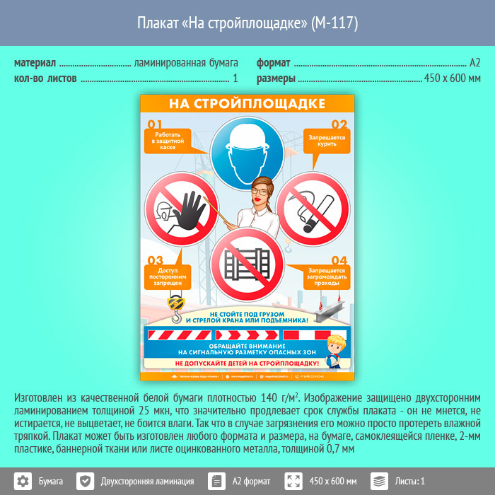 Плакат «На стройплощадке» (М-117, ламинированная бумага, А2, 1 лист) в Черкесске купить